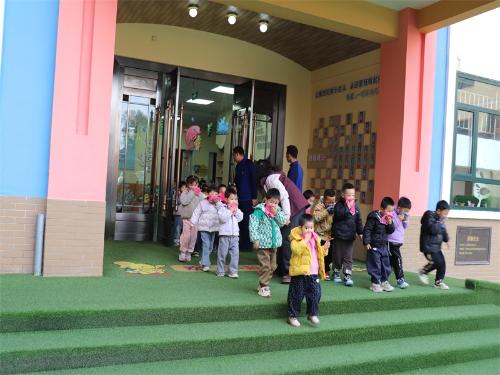 随后,急促的消防警报骤然响起,疏散演练正式启动。各班教师迅速组织幼儿用湿毛巾捂住口鼻、弯腰低姿,沿预设路线有序撤离至操场安全区域,全程紧张有序、零遗漏零意外,充分展现师幼良好的应急素养。
